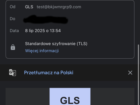 Należy również pamiętać, że oryginalne wiadomości lub faktury od GLS nigdy nie są wysyłane z adresów bezpłatnych usług pocztowych, takich jak e-maile kończące się na gmail.com lub Outlook.com.